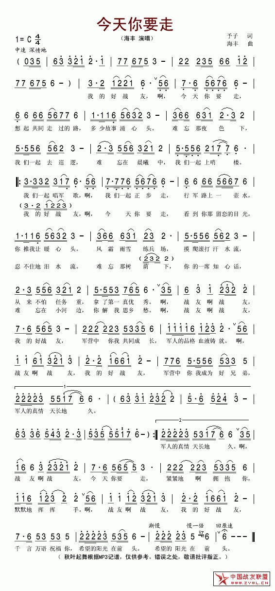 今天你要走(海丰)