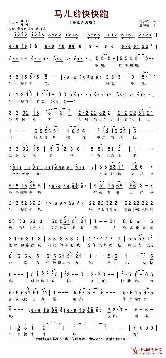 马儿哟快快跑(胡松华)