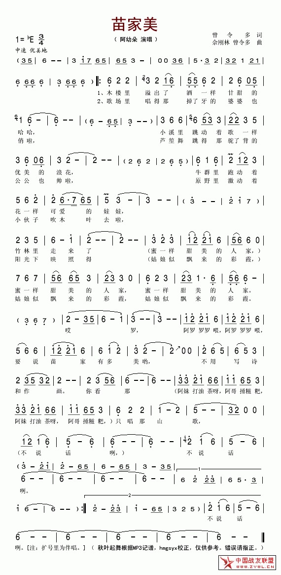 苗家美(阿幼朵)j简谱