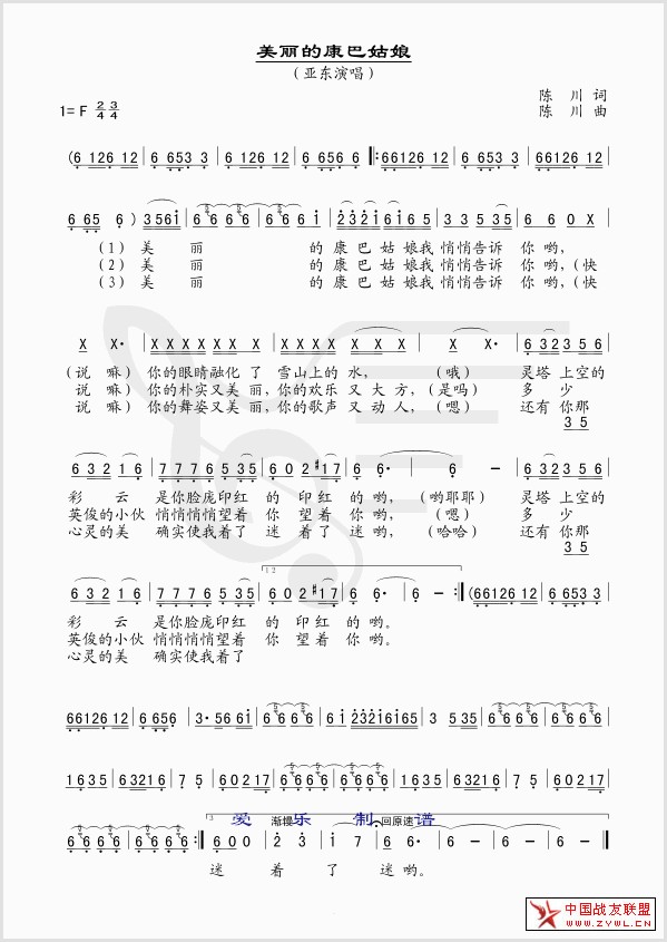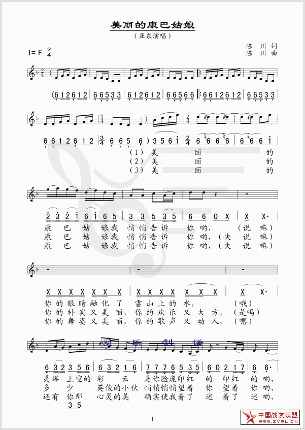 美丽的康巴姑娘 线、简谱混排版