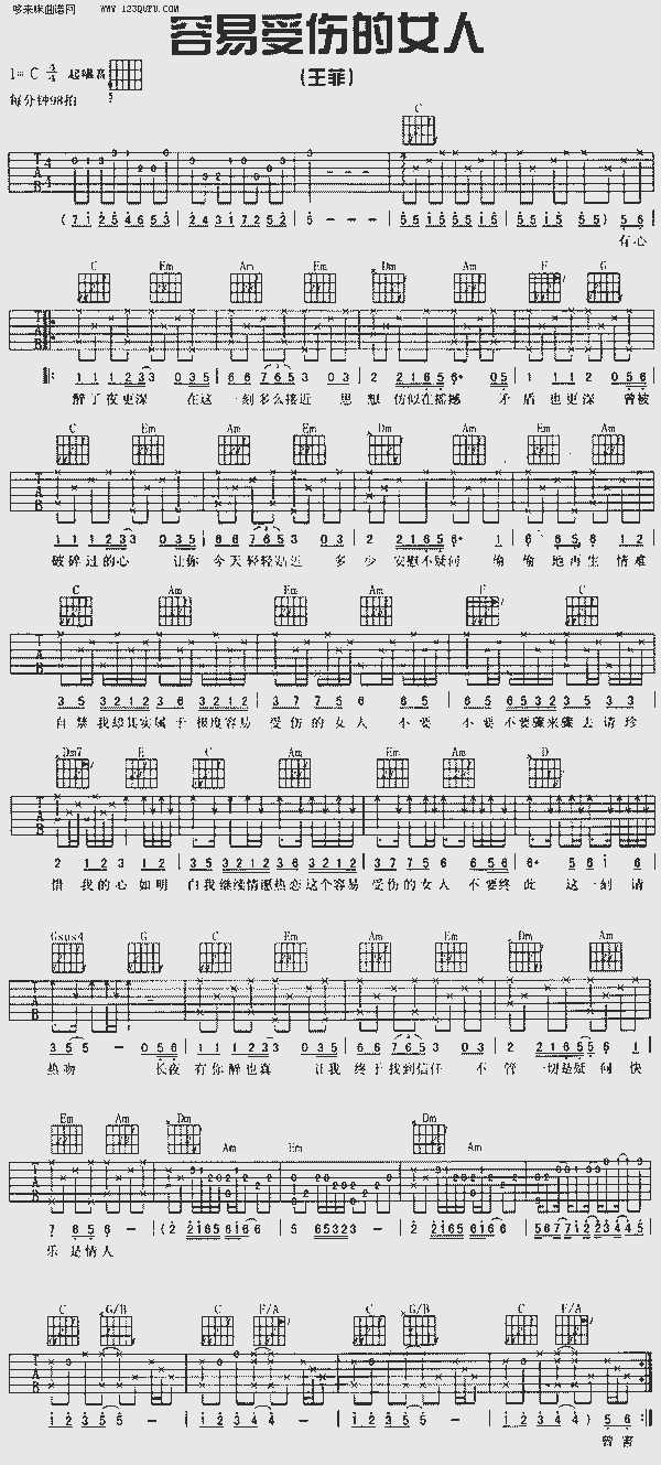 品书香曲谱资料器乐曲谱吉他曲谱 → 容易受伤的女人—王菲