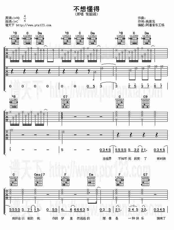→ 不想懂得(吉他谱)