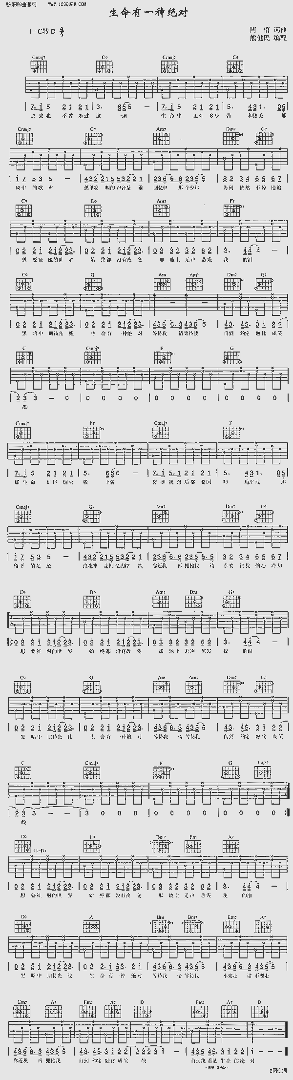 品书香曲谱资料器乐曲谱吉他曲谱 → 生命有一种绝对—五月天