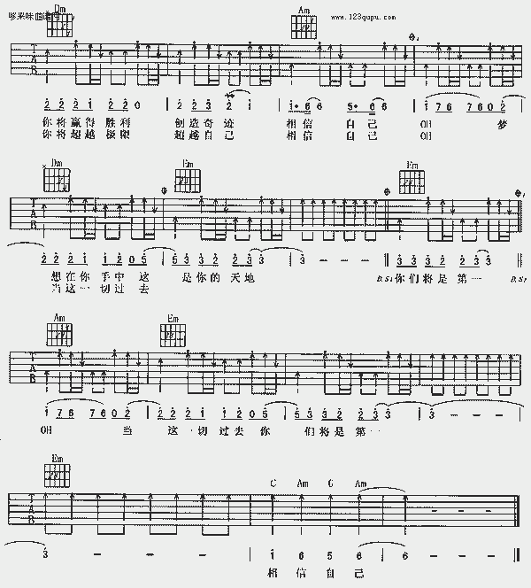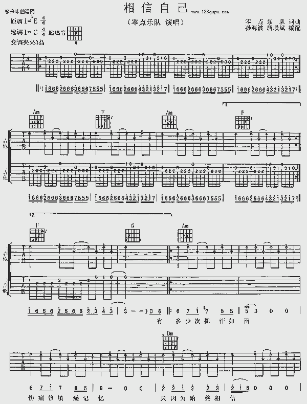 品书香曲谱资料器乐曲谱吉他曲谱 → 相信自己(零点乐队)