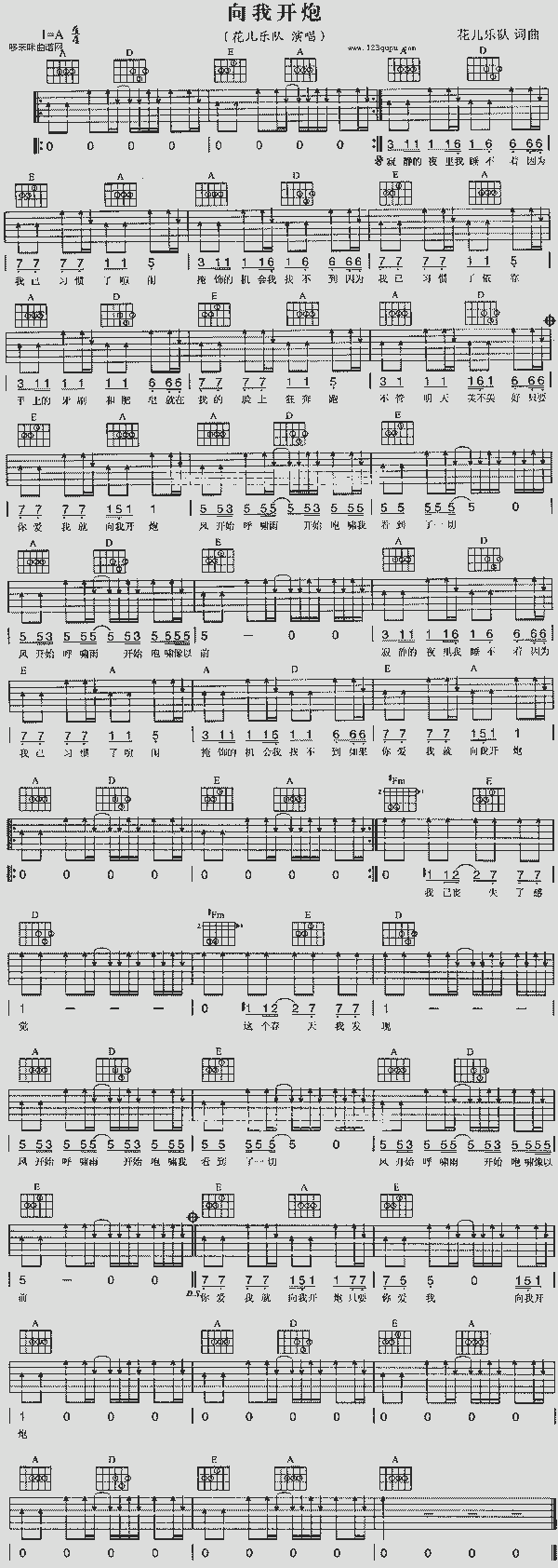 品书香曲谱资料器乐曲谱吉他曲谱 → 向我开炮(花儿乐队)