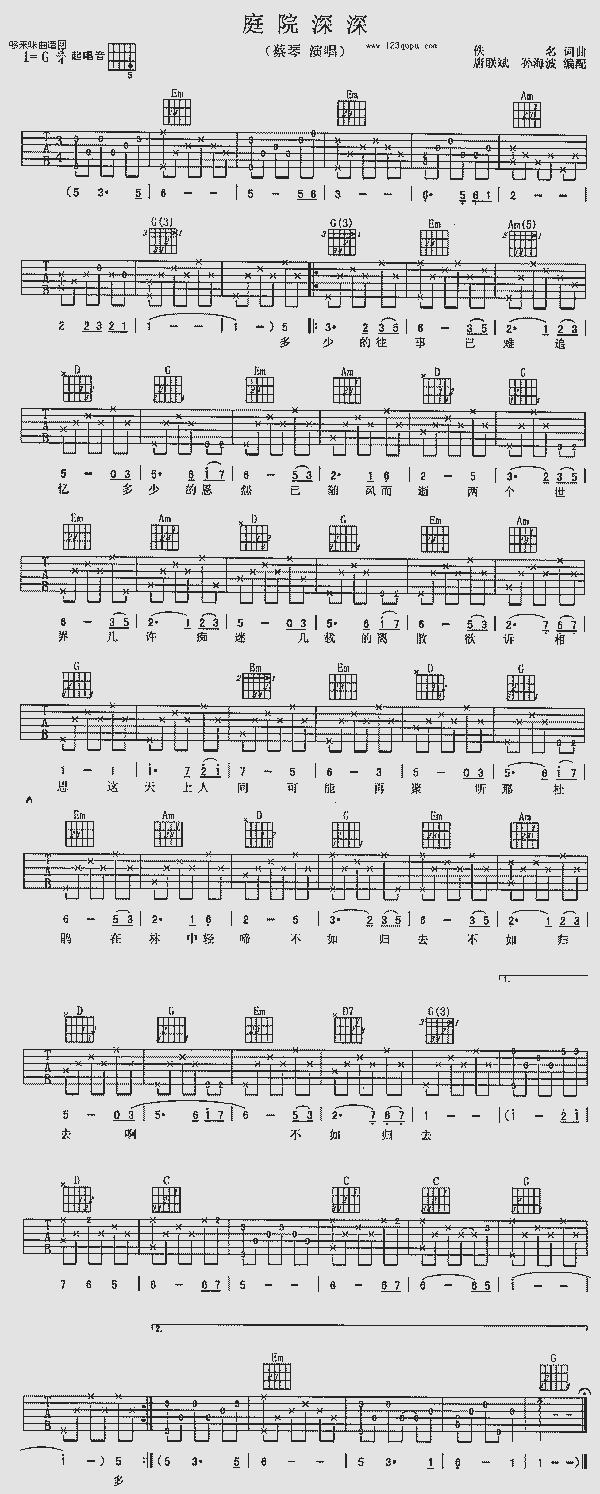 品书香 → 曲谱资料 → 器乐曲谱 → 吉他曲谱 → 庭院深深(蔡琴)