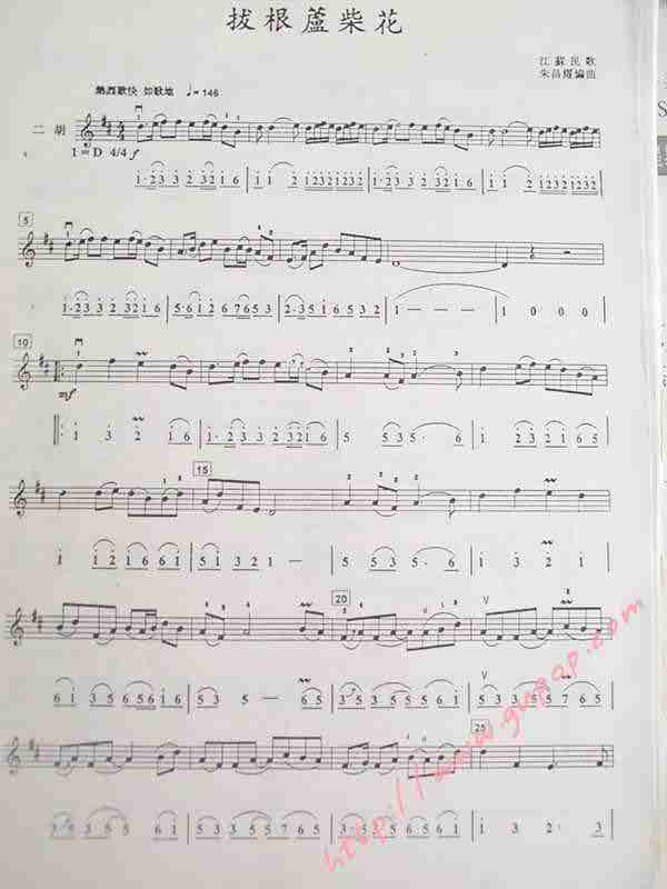 品书香曲谱资料器乐曲谱二胡曲谱 → 拔根芦柴花