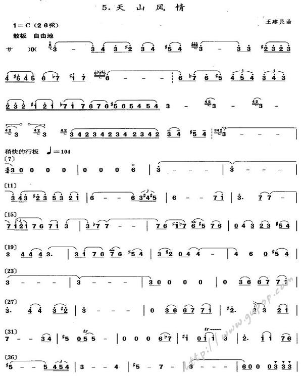 品书香曲谱资料器乐曲谱二胡曲谱 → 天山风情