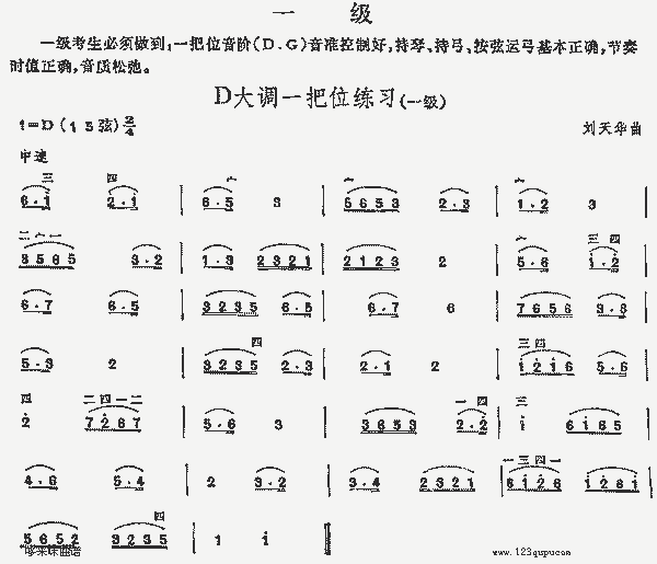 D大调一把位练习(中国二胡考级规定演奏曲/一级)
