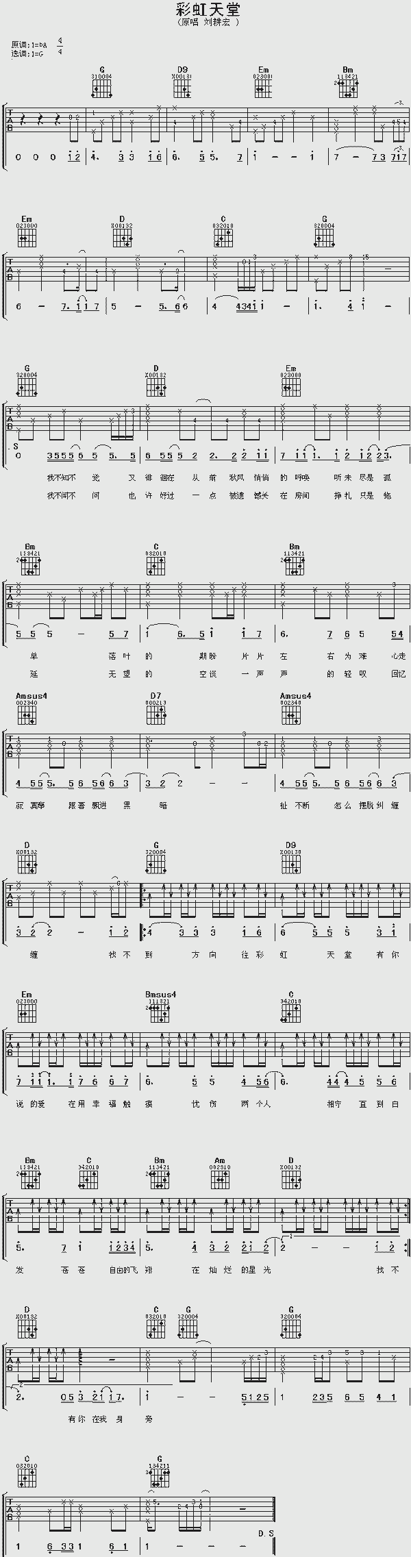 品书香曲谱资料器乐曲谱吉他曲谱 → 彩虹天堂