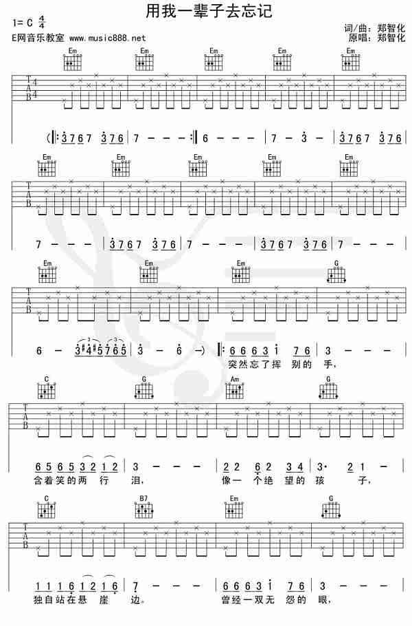 用我一辈子去忘记(吉他弹唱谱)[完整版]