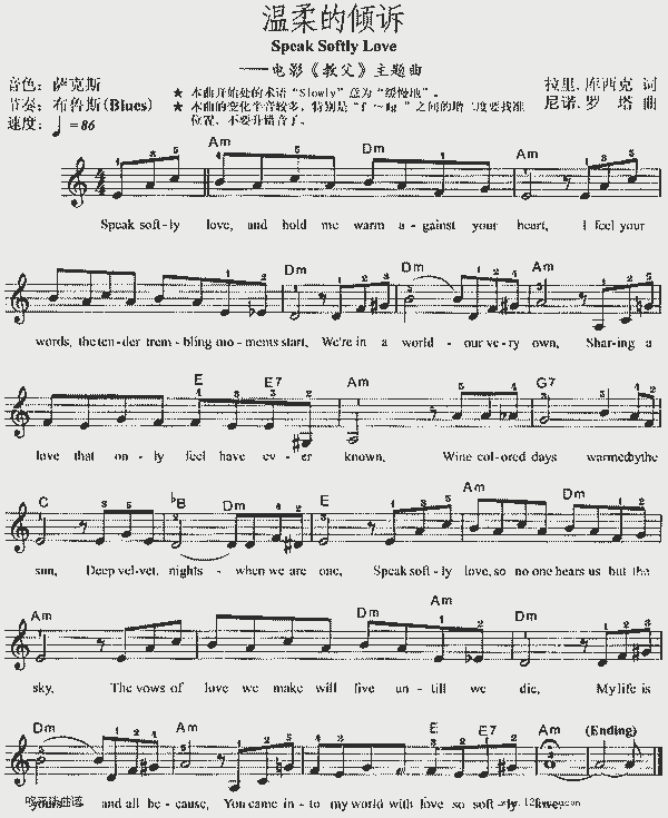 → 温柔的倾诉 Spesk Softly Love(《教父》主题曲)