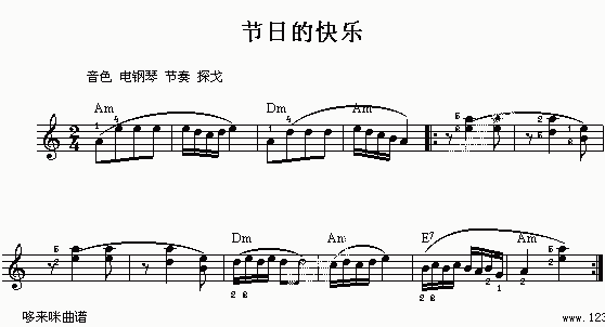 品书香曲谱资料器乐曲谱电子琴谱 → 节日的快乐