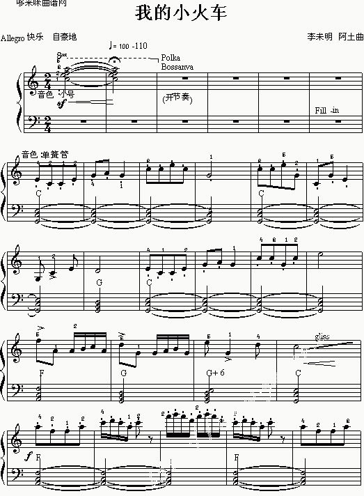 品书香曲谱资料器乐曲谱电子琴谱 → 我的小火车
