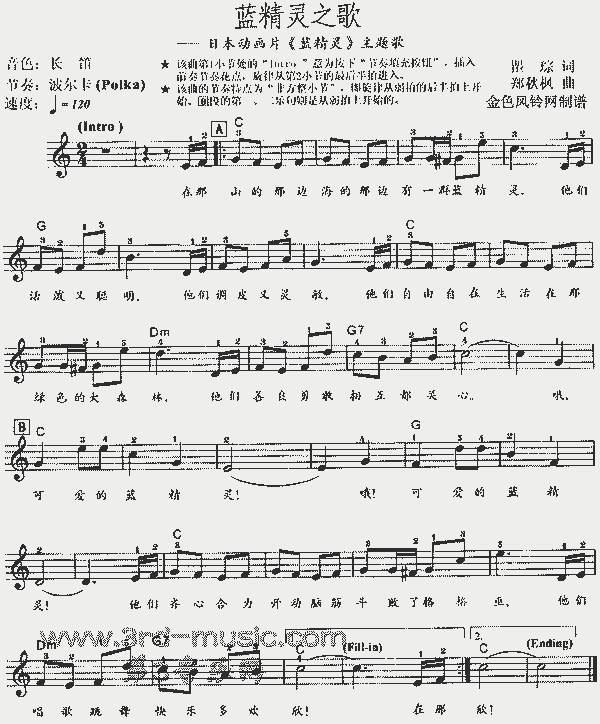 → 蓝精灵之歌(《蓝精灵》主题歌)[电子琴谱]