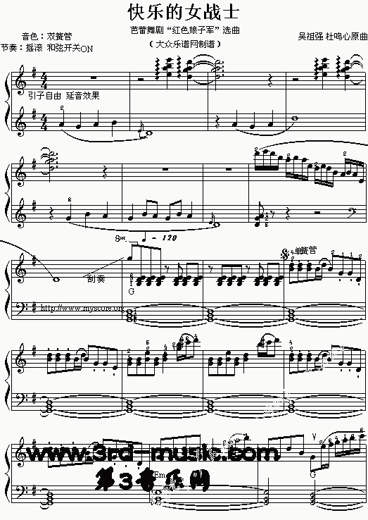→ 快乐的女战士(《红色娘子军》选曲)[电子琴谱]