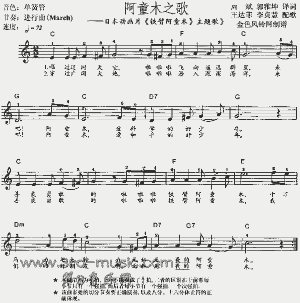 → 阿童木之歌(《铁臂阿童木》主题歌)[电子琴谱]