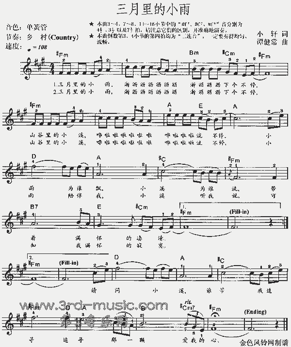 → 三月里的小雨[电子琴谱]