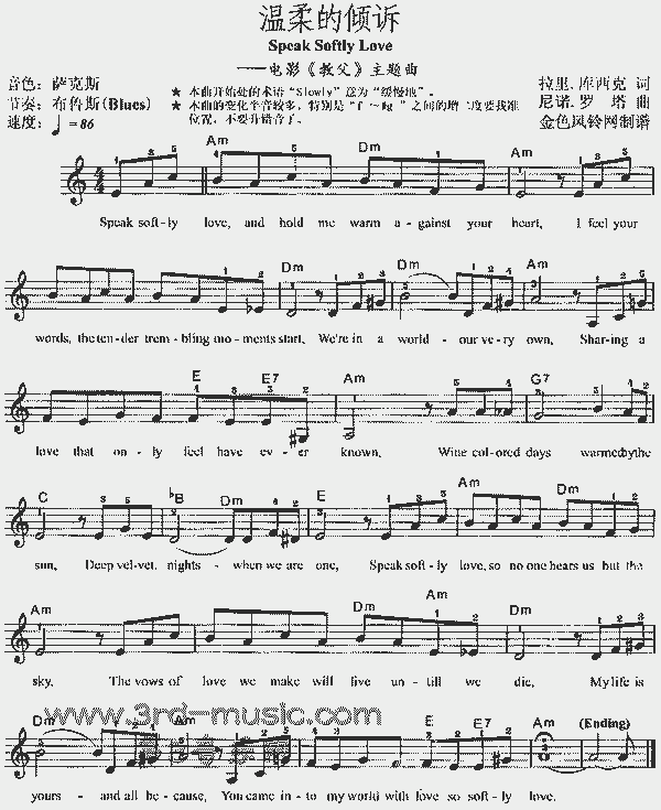 → 温柔的倾诉 Spesk Softly Love(《教父》主题曲)[电子琴谱]