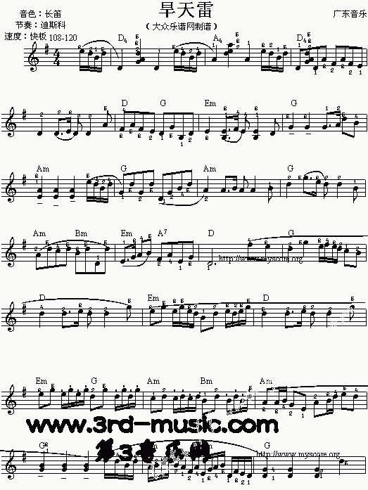 → 旱天雷(广东音乐)[电子琴谱]