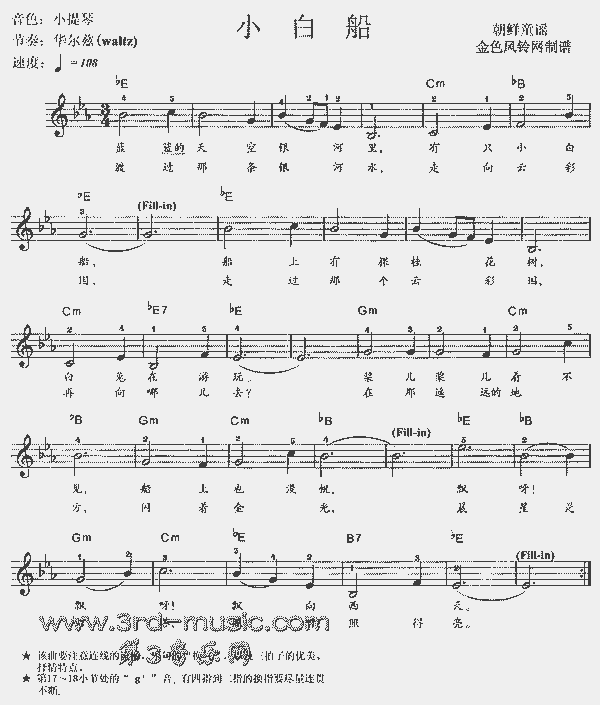 小白船(朝鲜童谣)[电子琴谱]