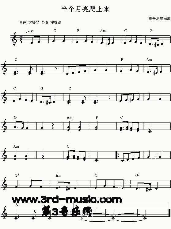 → 半个月亮爬上来(维吾尔族)[电子琴谱]