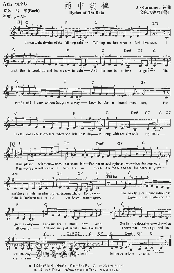 雨中旋律 Rythm Of The Rain[电子琴谱]