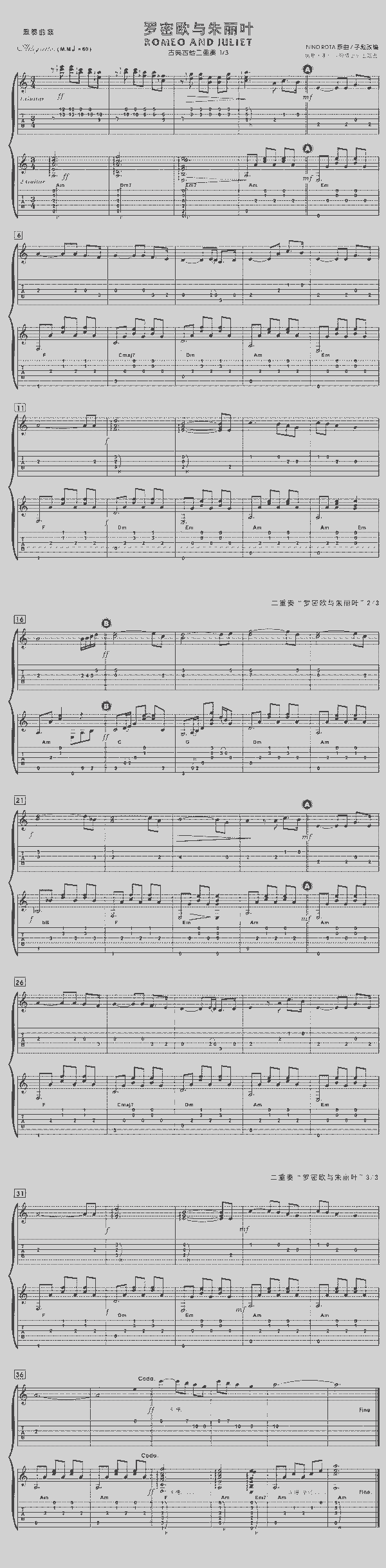 品书香曲谱资料器乐曲谱吉他曲谱 → 罗密欧与朱丽叶