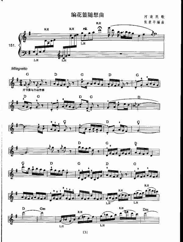 → 编花篮随想曲(电子琴中级班乐曲)