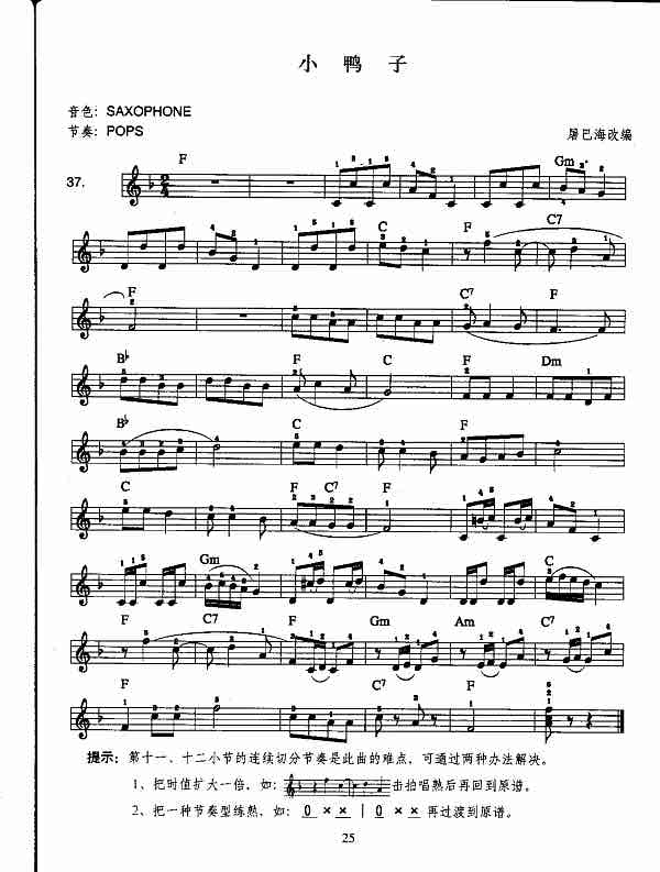 品书香曲谱资料器乐曲谱电子琴谱 → 小鸭子(中级班电子琴乐谱)