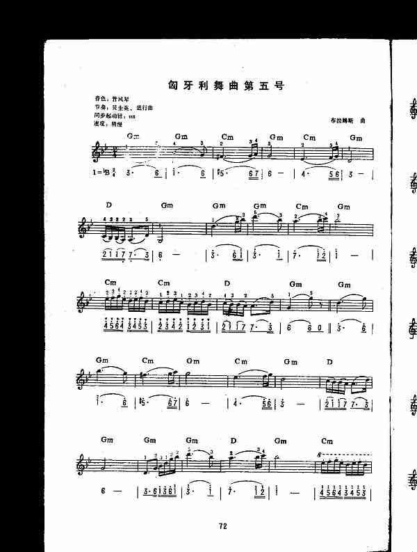 匈牙利舞曲第五号(中级班电子琴乐谱)
