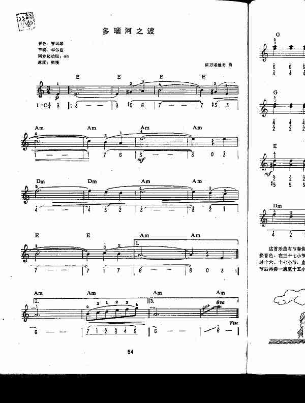 品书香曲谱资料器乐曲谱电子琴谱 → 多脑河之波(中级班电子琴乐谱)