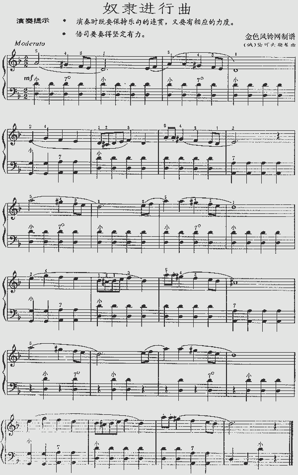 品书香曲谱资料器乐曲谱手风琴谱 → 奴隶进行曲(俄罗斯)