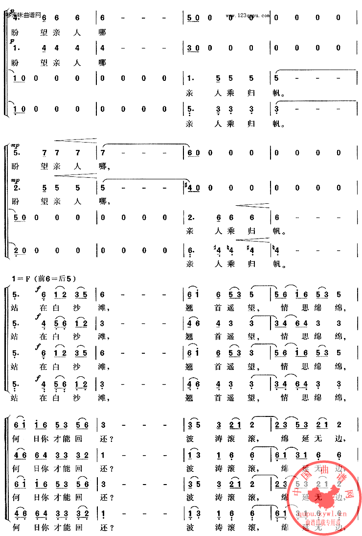 [合唱谱]党啊,亲爱的妈...