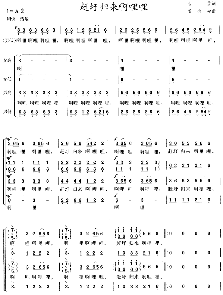 赶圩归来啊哩哩(合唱谱)