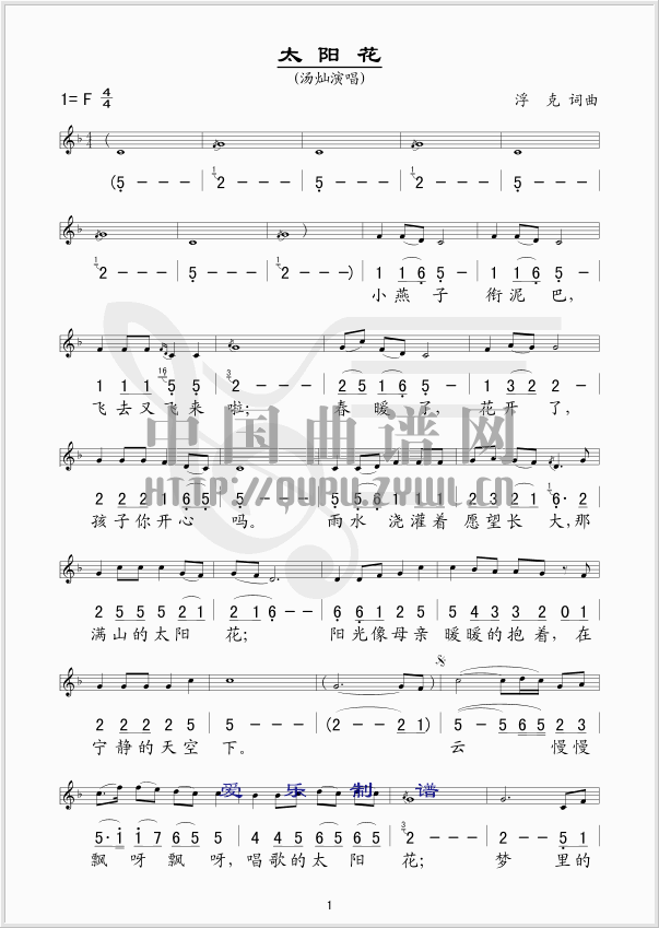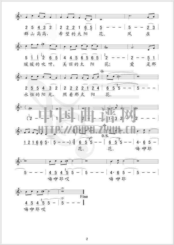 《太阳花》线、简谱混排版