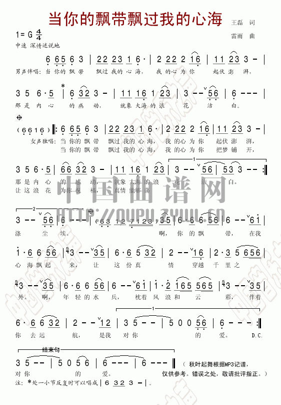 当你的飘带飘过我的心海
