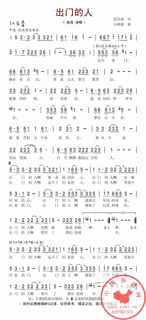 出门的人-祖海(简谱)