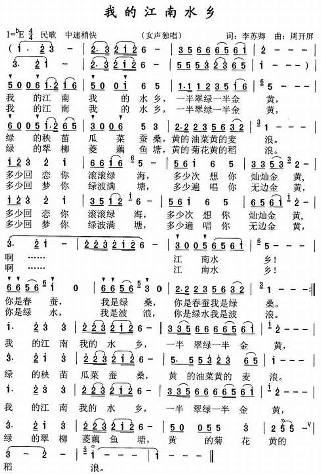 推荐民歌曲谱