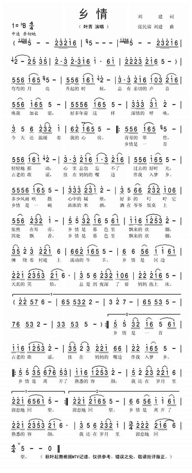 最新民歌曲谱