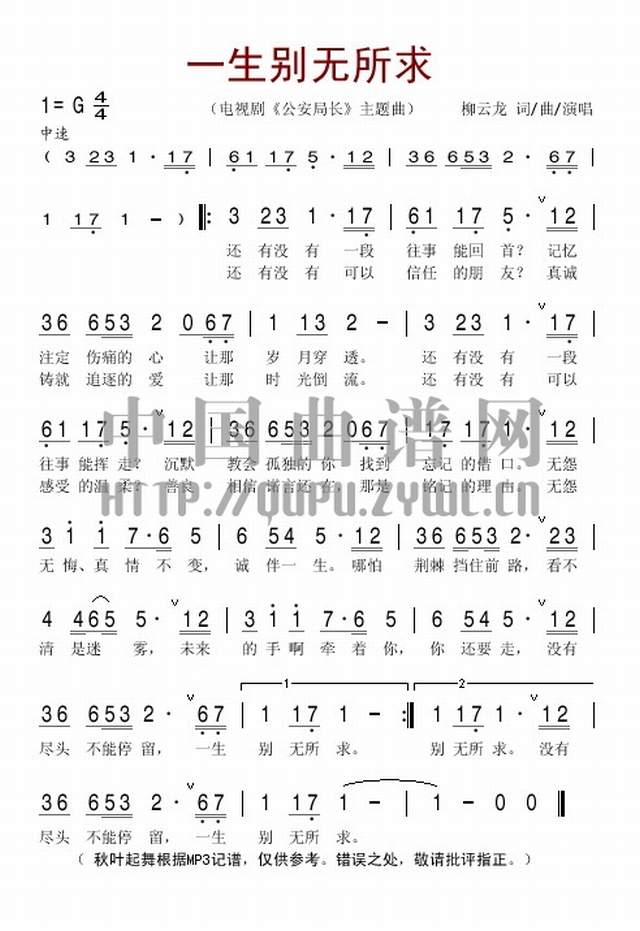 一生别无所求(《公安局长》主题曲)--柳云龙