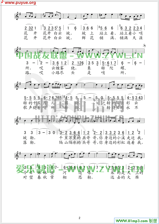 推荐民歌曲谱