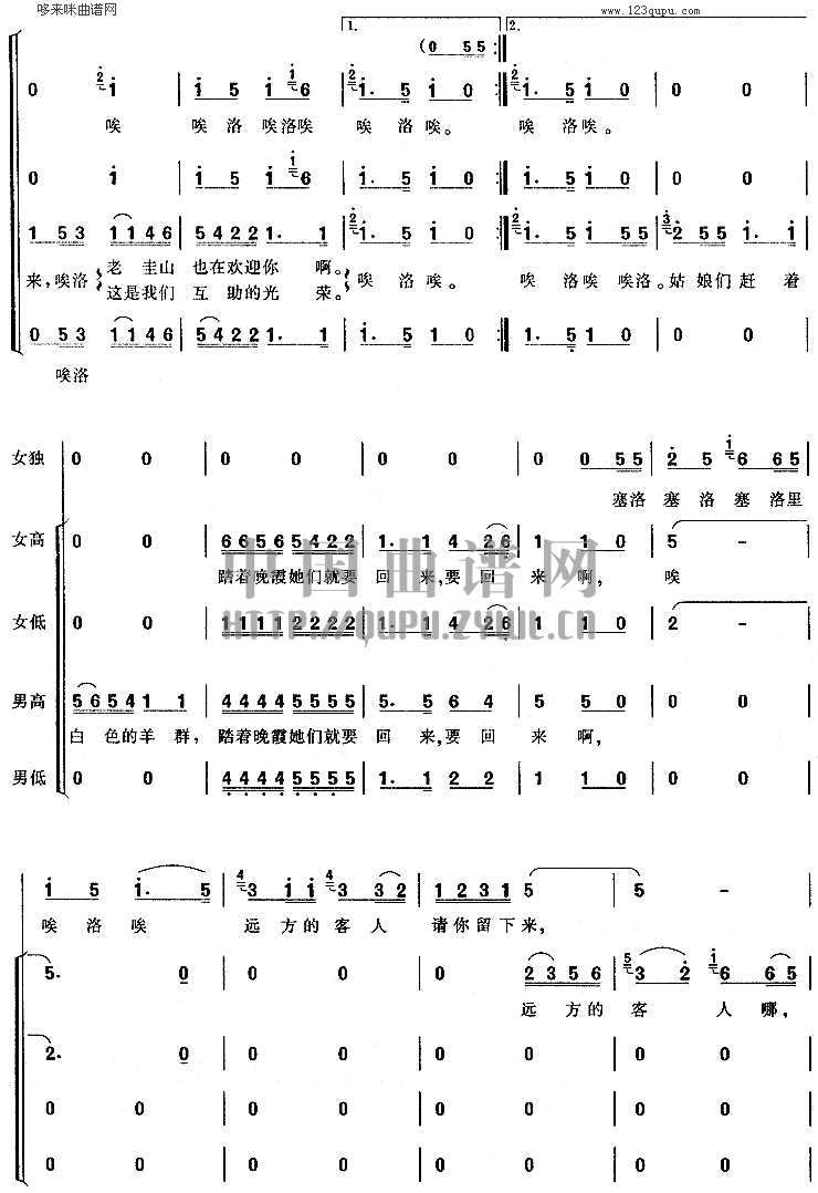 推荐民歌曲谱