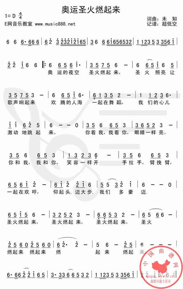 奥运圣火燃起来 (二声部合唱简谱)