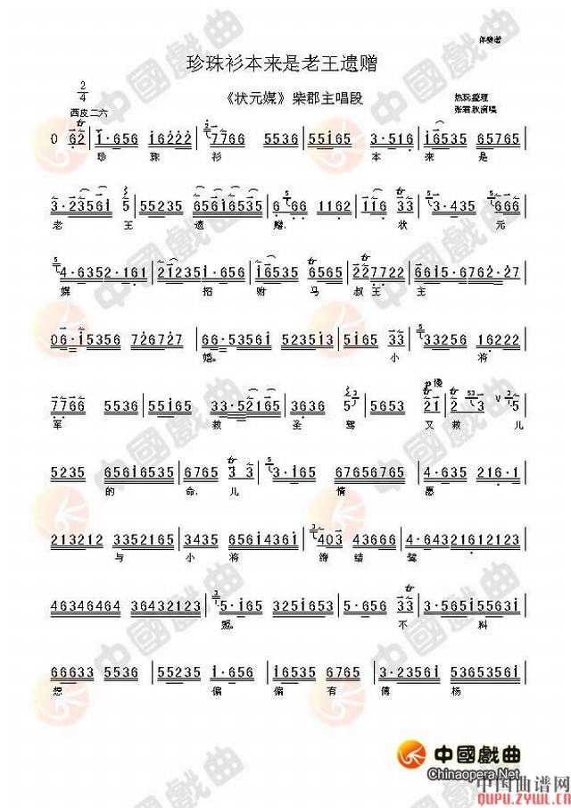 珍珠衫本来是老王遗赠(京剧《状元媒》琴谱 )