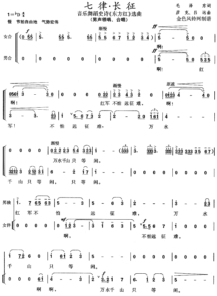七律·长征(《东方红》选曲)[合唱曲谱]