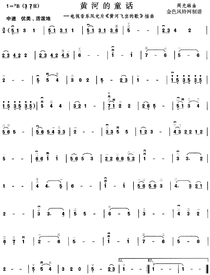 黄河的童话(《黄河飞出的歌》插曲)[二胡曲谱]