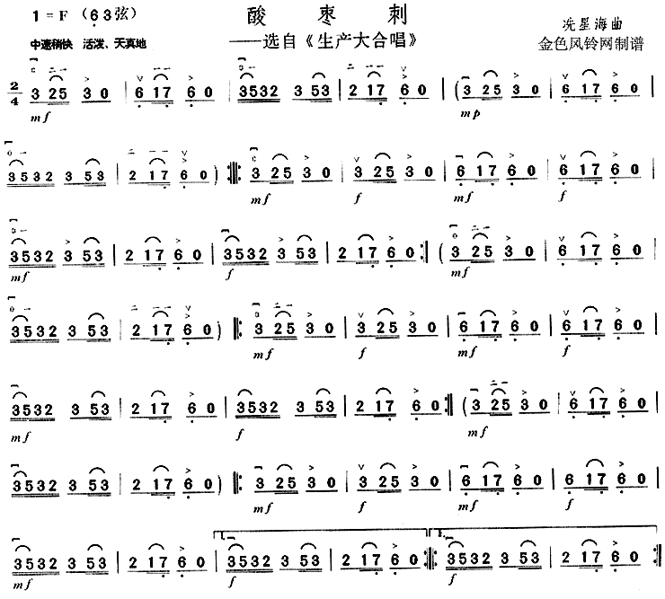 酸枣刺(选自《生产大合唱》)[二胡曲谱]
