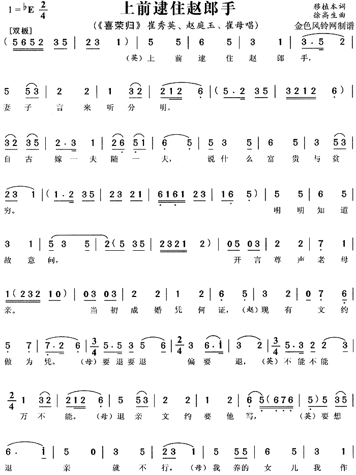 上前逮住赵郎手《喜荣归》[戏曲曲谱]