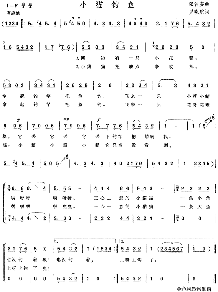 小猫钓鱼(儿童歌)[合唱曲谱]